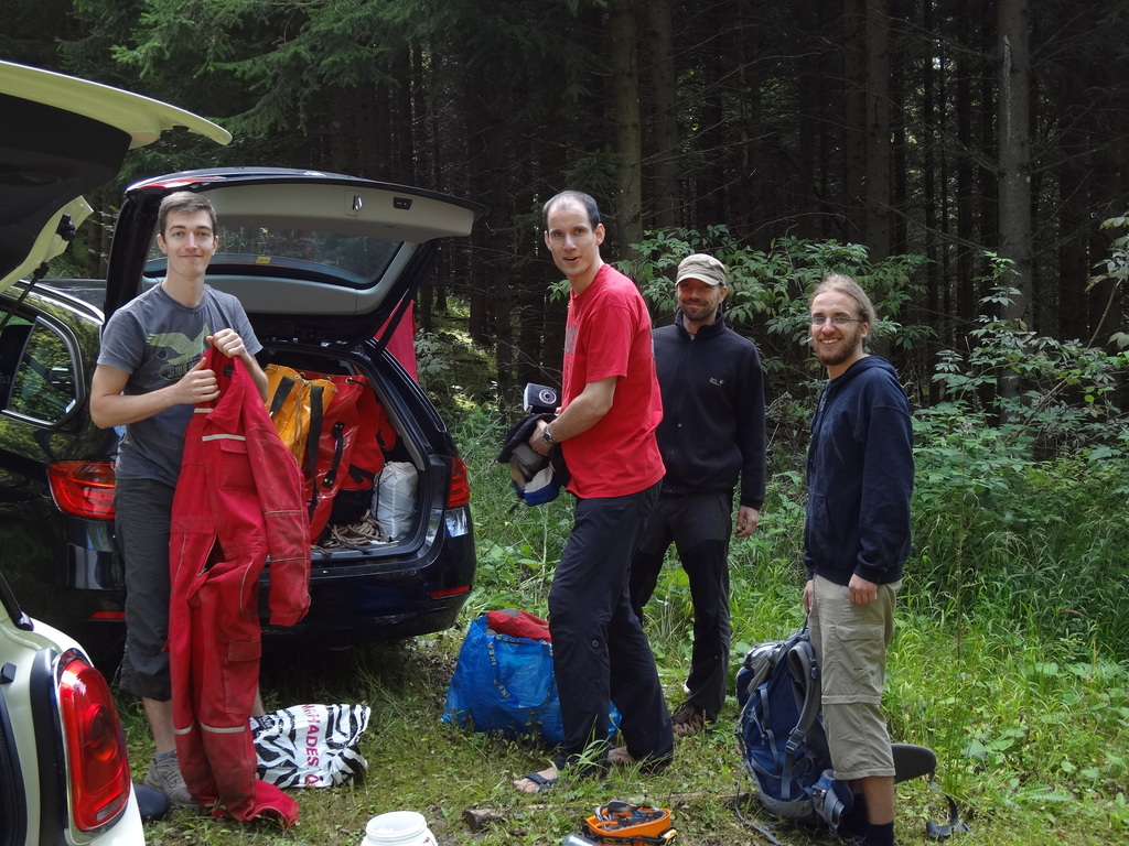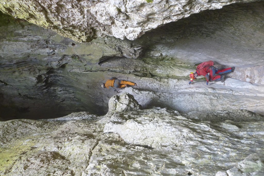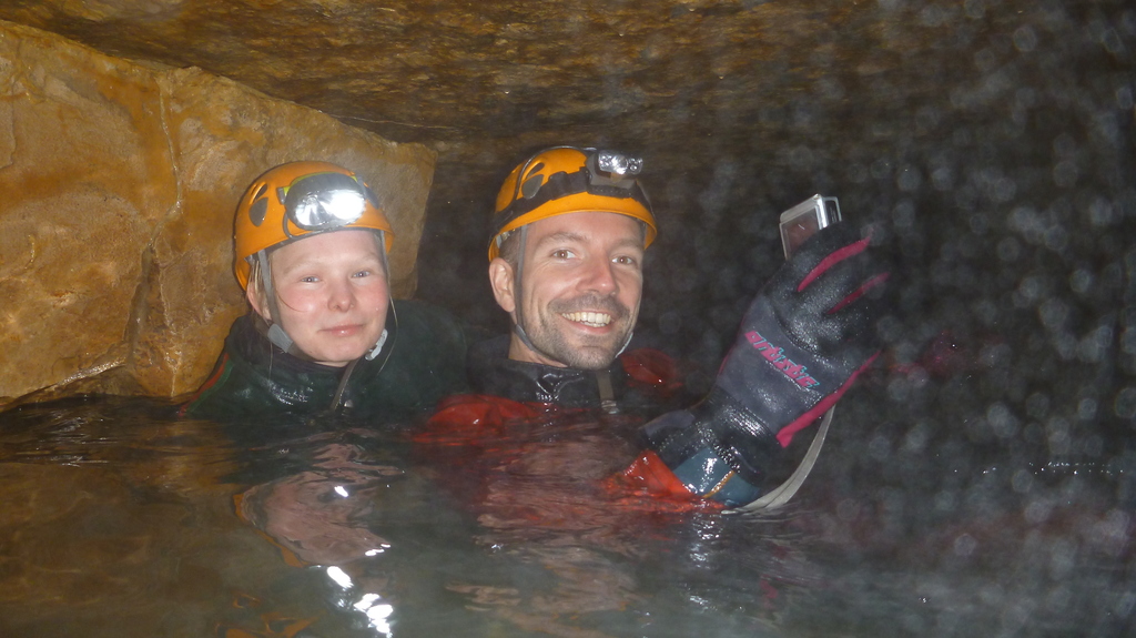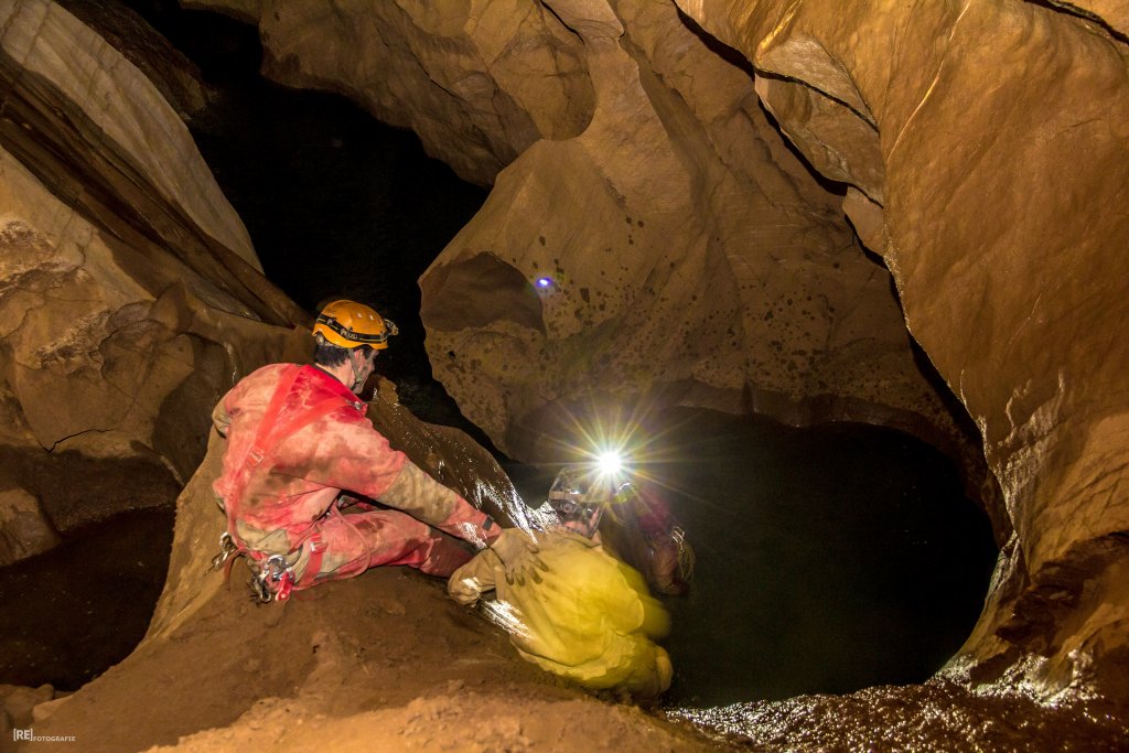 Die diesjährige Tour in den sonnigen Süden Frankreichs an die Ardèche sollte wieder durch einige Wasserhöhlen geprägt sein, nachdem in den letzten Jahren das Interesse immer weiter gestiegen war. Da alle aus dem Freundeskreis und die studentischen Teilnehmer aus dem Unisport-Kurs „Einseiltechnik zur Höhlenbefahrung“ der TU Dresden gut mit Neopren ausgestattet waren, starten wir motiviert mit der Grotte du Runladou. Hier hatten wir schon alles angetroffen, von ausschließlich wassergefüllten Gängen bis zum langen Abstiegen, mehrere Meter unter dem höchsten Wasserniveau. Auch dieses Jahr war reichlich Wasser vorhanden, gerade ausreichend um schwimmend bis in den ‚Salle du Luc‘ zu gelangen.