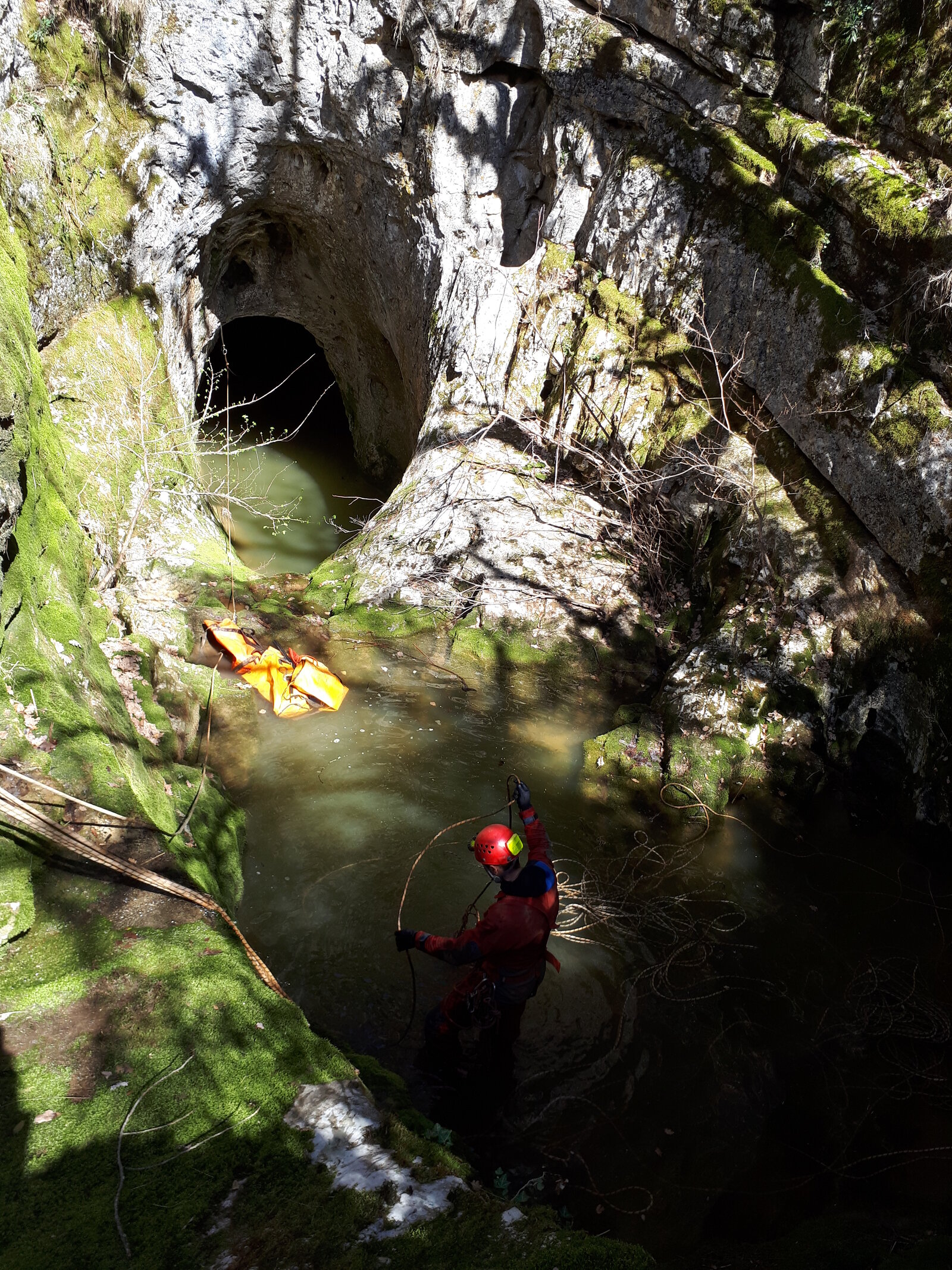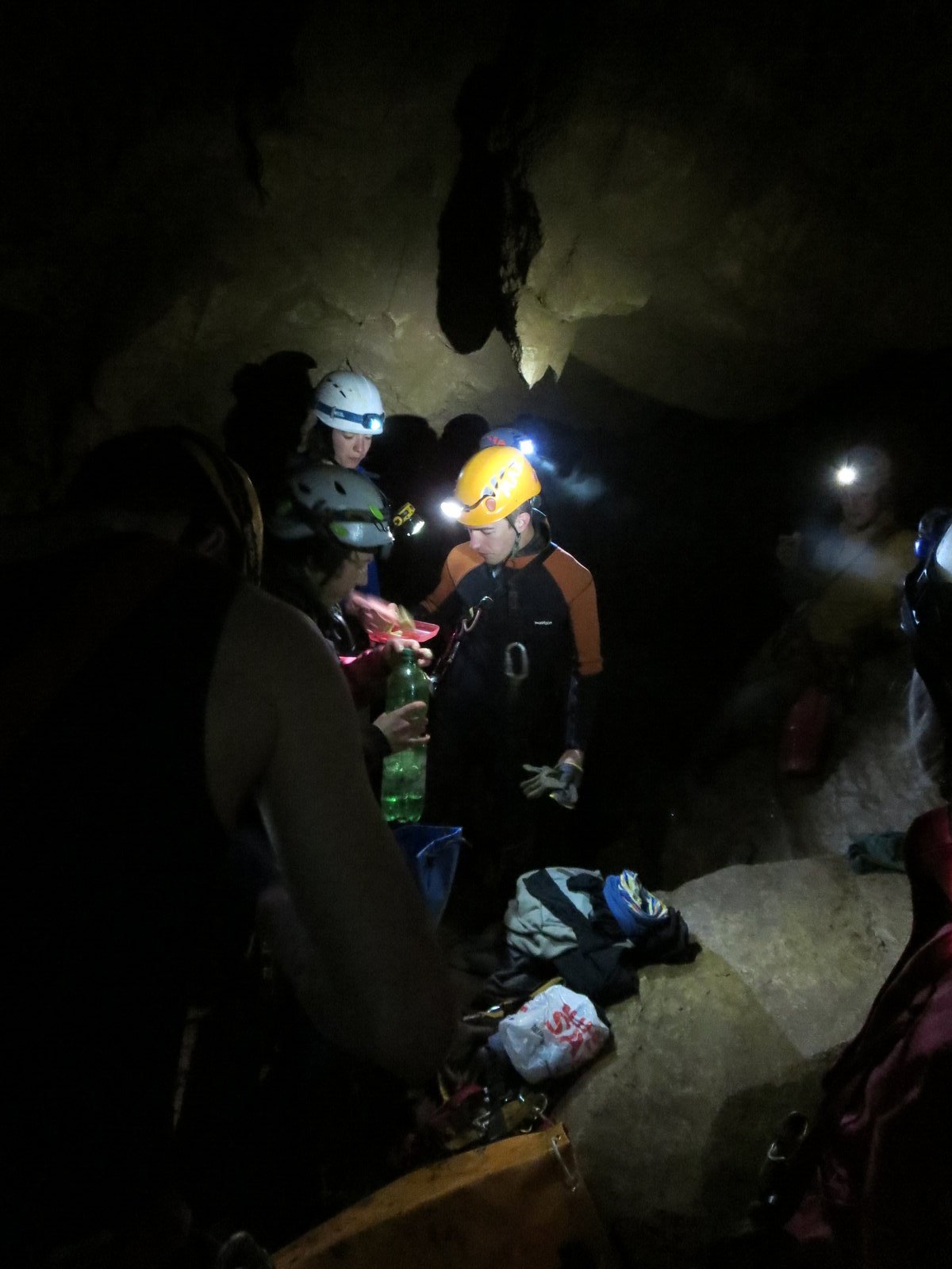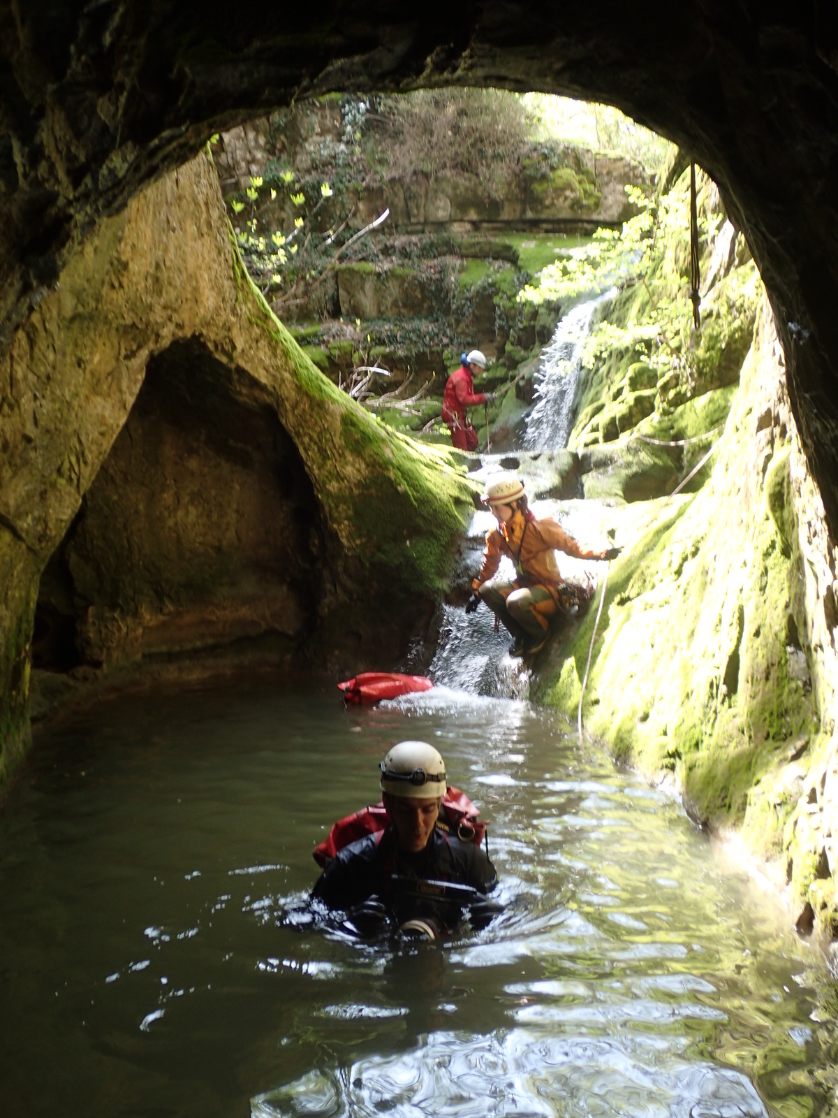 Die diesjährige Tour in den sonnigen Süden Frankreichs an die Ardèche sollte wieder durch einige Wasserhöhlen geprägt sein, nachdem in den letzten Jahren das Interesse immer weiter gestiegen war. Da alle aus dem Freundeskreis und die studentischen Teilnehmer aus dem Unisport-Kurs „Einseiltechnik zur Höhlenbefahrung“ der TU Dresden gut mit Neopren ausgestattet waren, starten wir motiviert mit der Grotte du Runladou. Hier hatten wir schon alles angetroffen, von ausschließlich wassergefüllten Gängen bis zum langen Abstiegen, mehrere Meter unter dem höchsten Wasserniveau. Auch dieses Jahr war reichlich Wasser vorhanden, gerade ausreichend um schwimmend bis in den ‚Salle du Luc‘ zu gelangen.