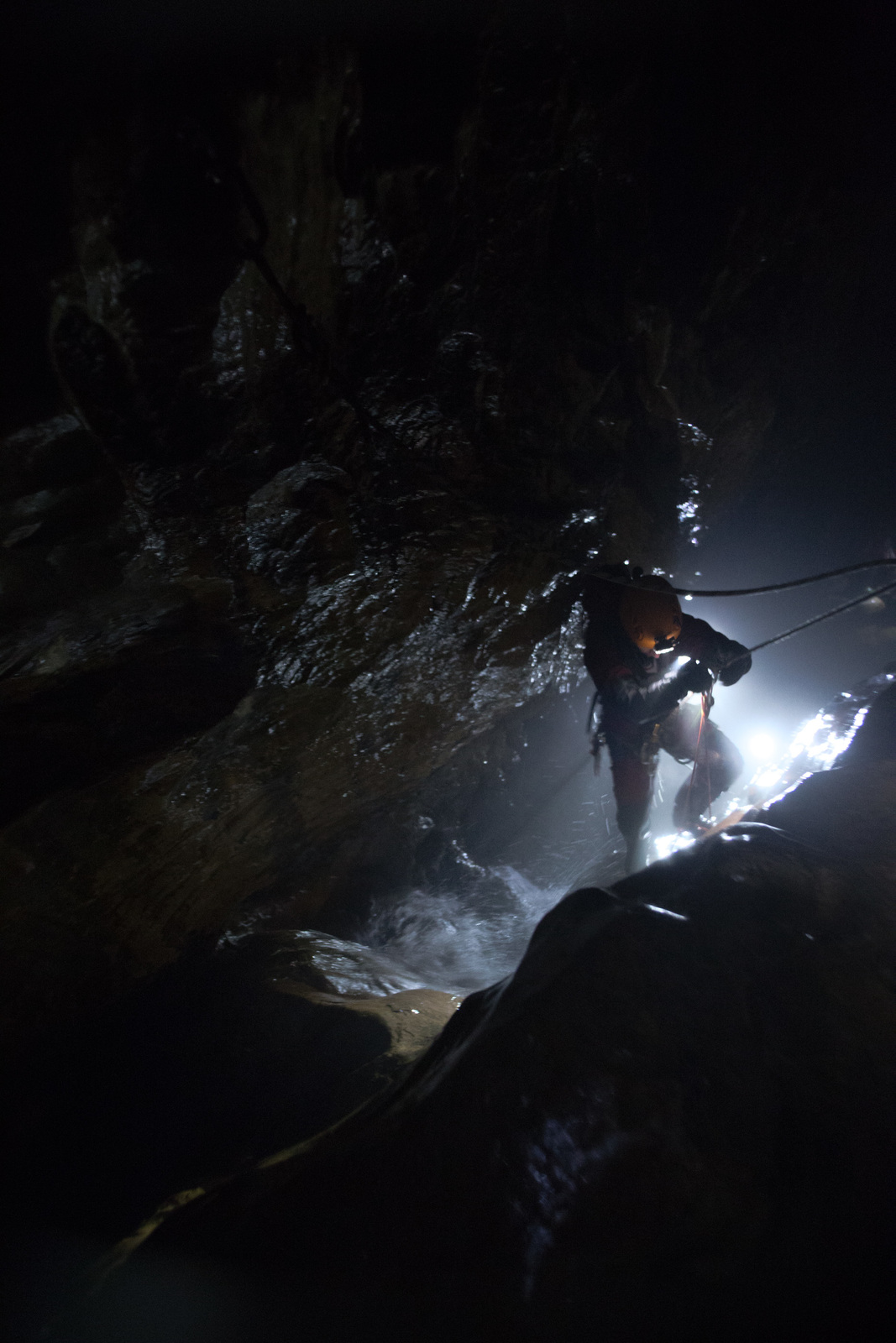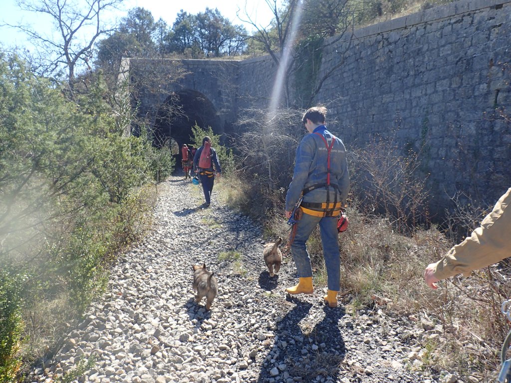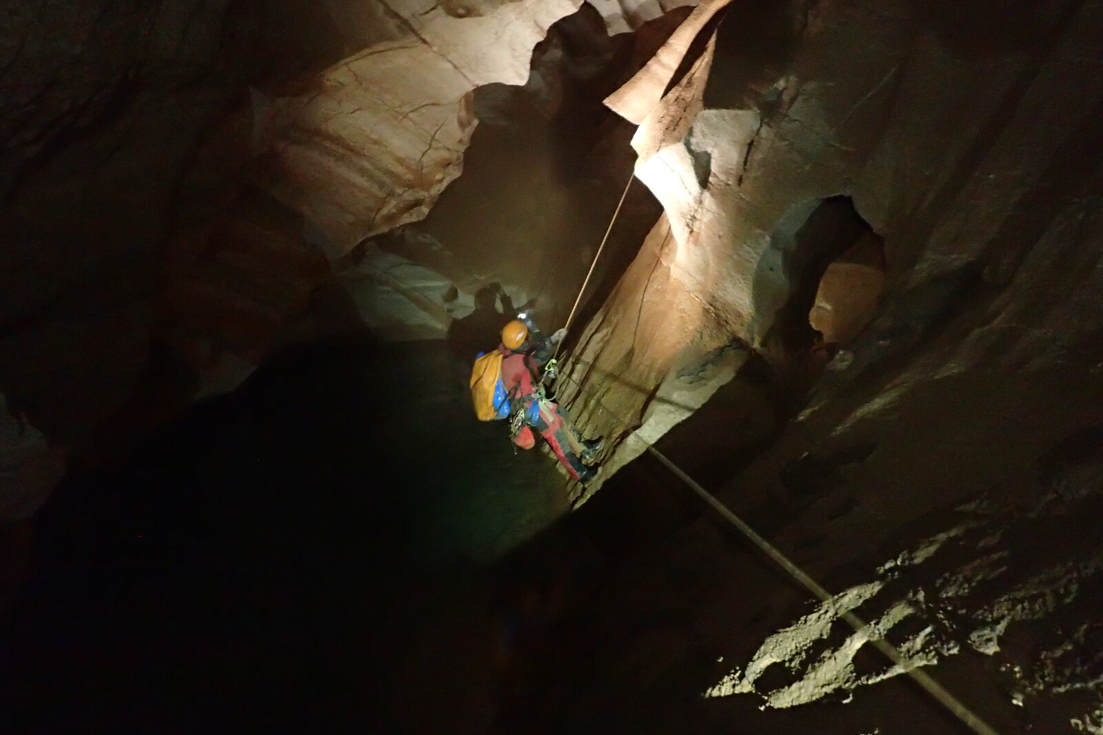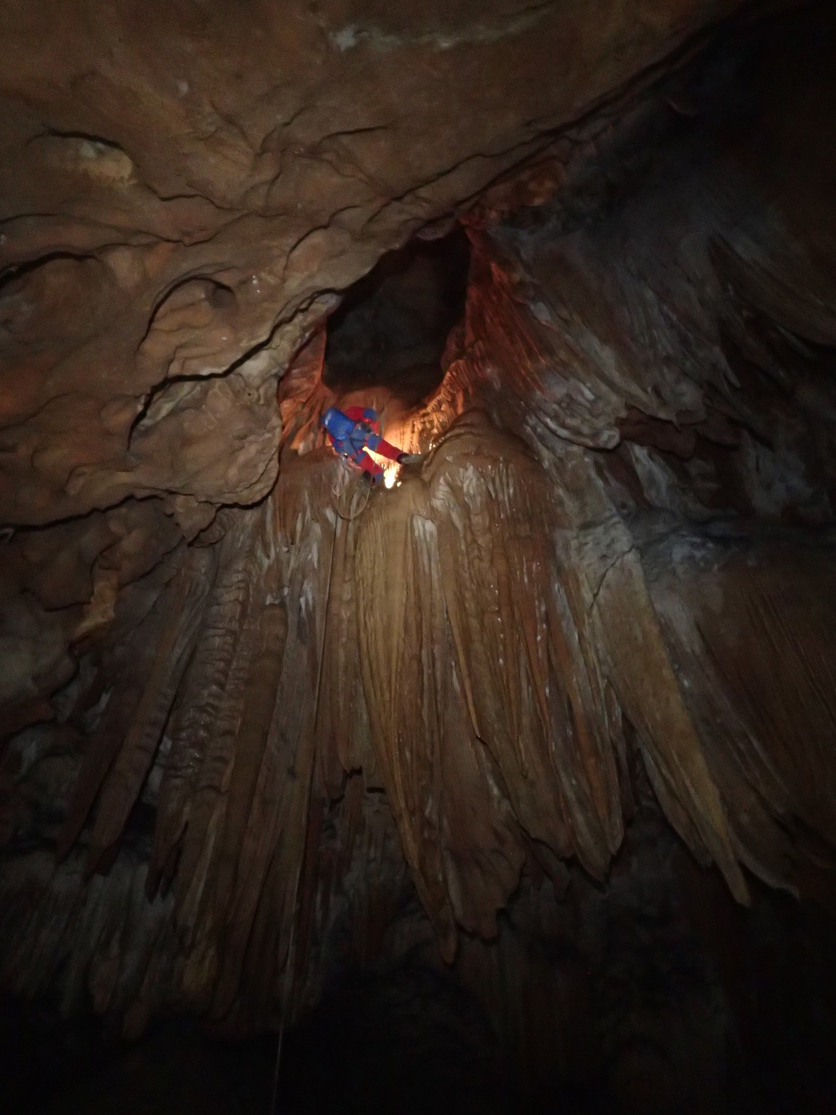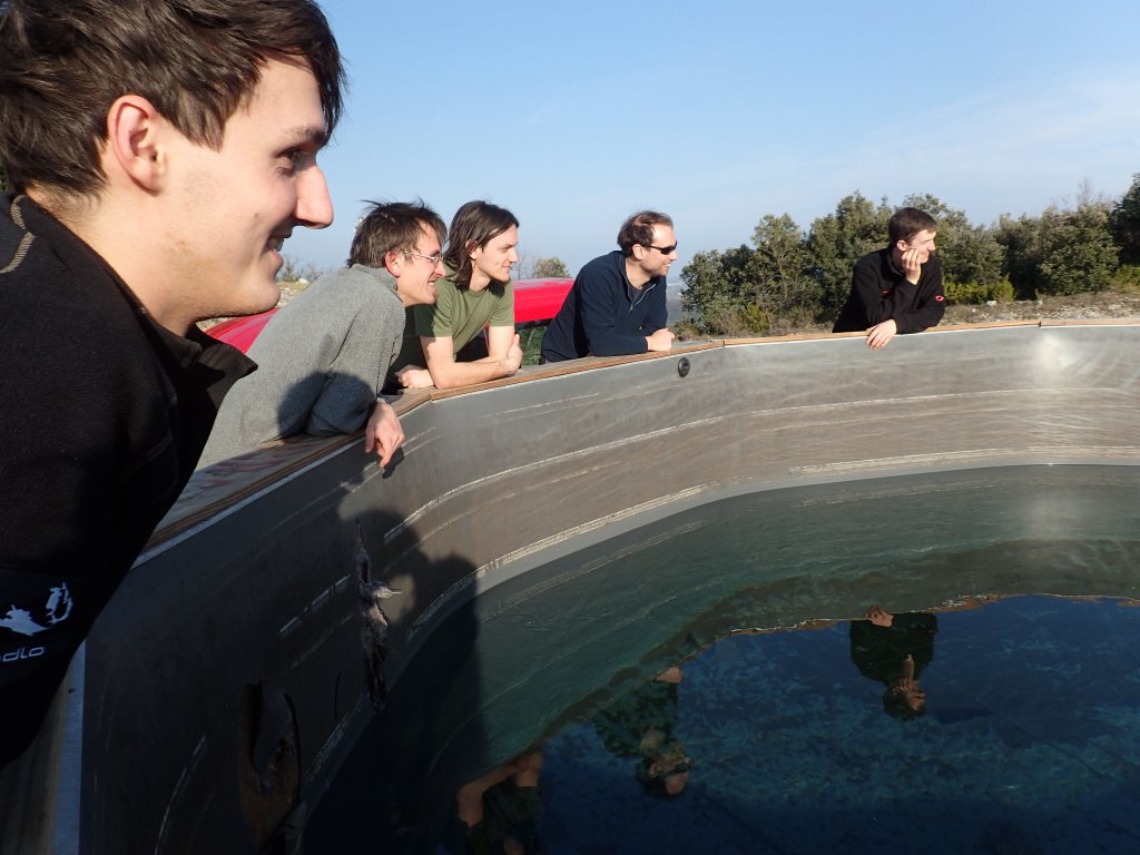 Nicht nur Wasserhöhlen, sondern auch viel Schacht standen in diesem Jahr auf dem Programm. Mit der ganzen Gruppe konnten wir u.a. die Aven des Oublis befahren, die sich ab dem ersten Schachtboden in einen Bereich mit großen Räumen und sehnswertem Tropfstein, und einen zweiten Schachtabschnitt aufteilt. Perfekt auch für eine etwas größere Gruppe, bei der man sich am Schachtkopf immer mal wieder begegnet. Oberhalb des malerischen Örtchens Tharaux und der Cèze gelegen, ist allein der Zustieg eine Reise wert. Aber auch in kleineren, geteilten Gruppen konnten wir tiefere Schachthöhlen befahren; nach vielen Jahren mal wieder mit einen Blick in die Aven du Marteau und zeitgleich in das System Rochas–Midroï werfen. Leider war der komplette Durchstieg zur Midroï, und damit auf Flussniveau der Ardèche, am Ende durch 20 fehlende Seilmeter knapp verwehrt, reizt aber umso mehr für die kommenden Jahre.