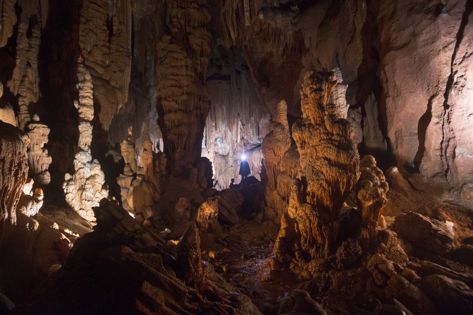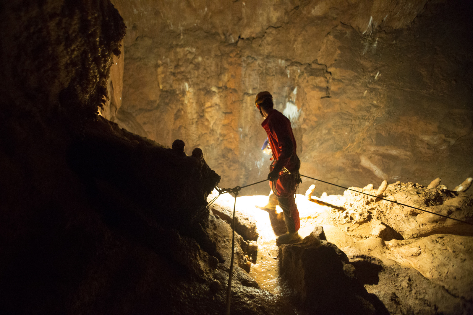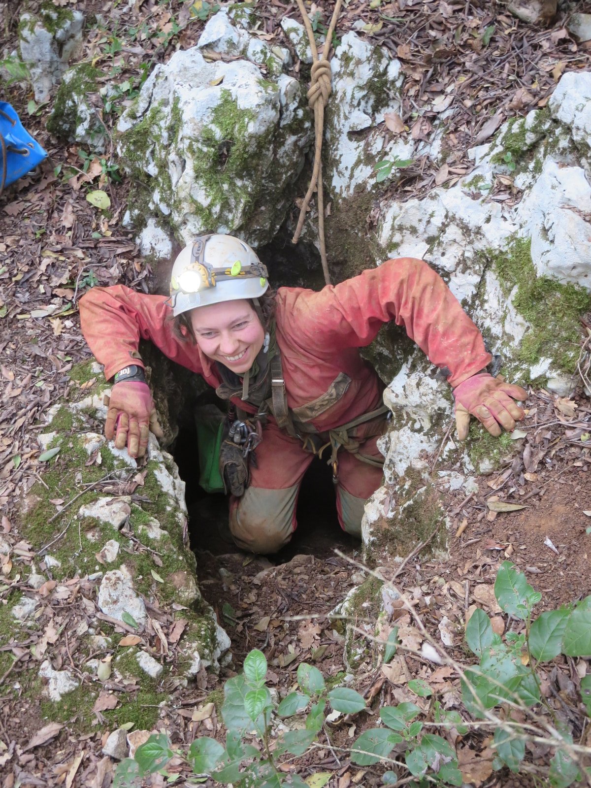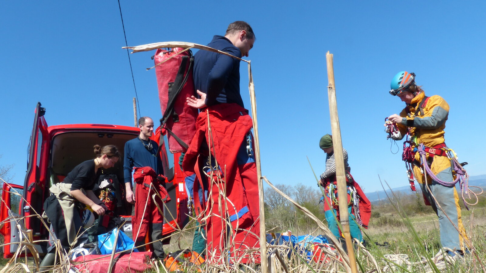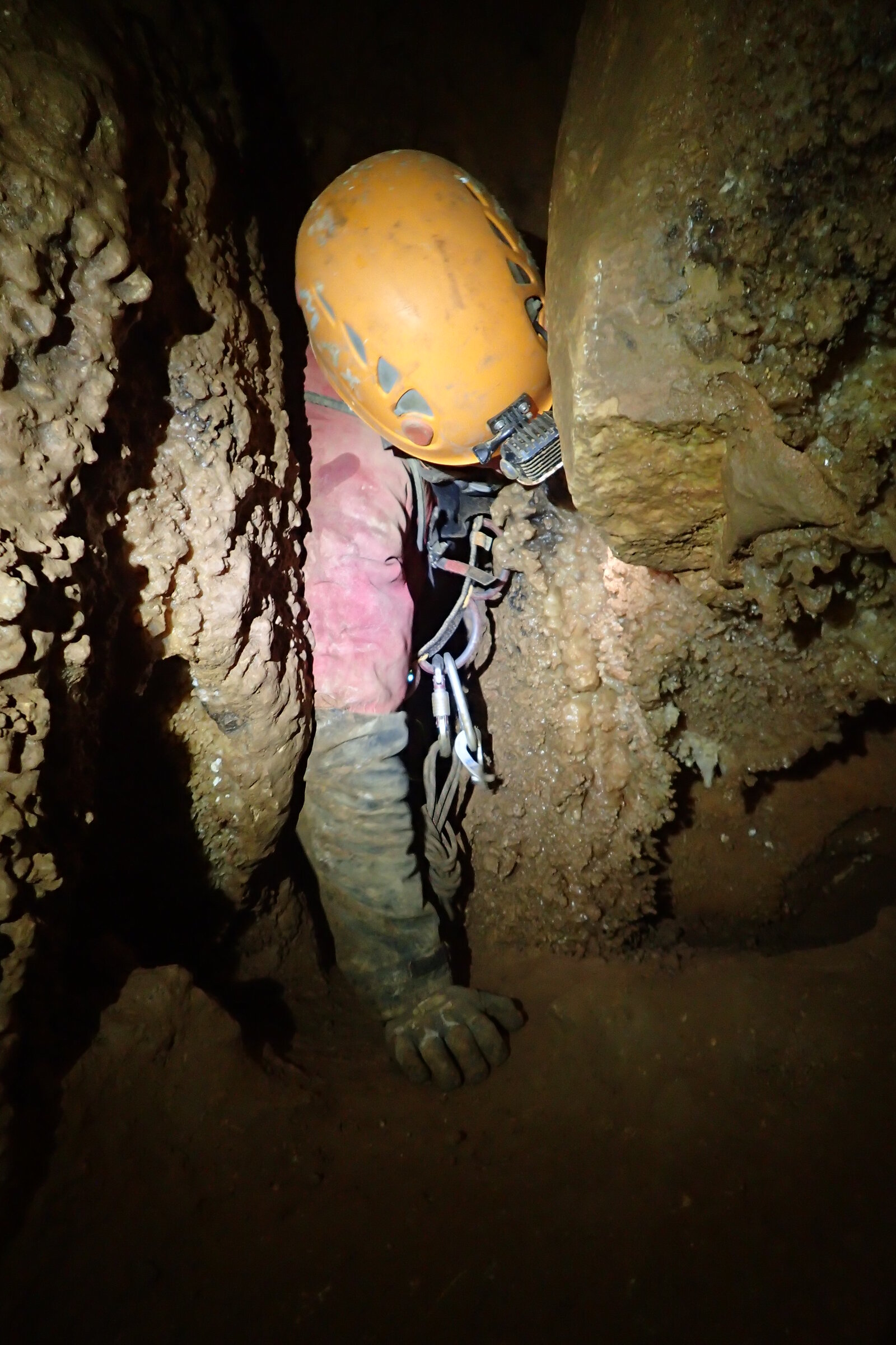 Nicht nur Wasserhöhlen, sondern auch viel Schacht standen in diesem Jahr auf dem Programm. Mit der ganzen Gruppe konnten wir u.a. die Aven des Oublis befahren, die sich ab dem ersten Schachtboden in einen Bereich mit großen Räumen und sehnswertem Tropfstein, und einen zweiten Schachtabschnitt aufteilt. Perfekt auch für eine etwas größere Gruppe, bei der man sich am Schachtkopf immer mal wieder begegnet. Oberhalb des malerischen Örtchens Tharaux und der Cèze gelegen, ist allein der Zustieg eine Reise wert. Aber auch in kleineren, geteilten Gruppen konnten wir tiefere Schachthöhlen befahren; nach vielen Jahren mal wieder mit einen Blick in die Aven du Marteau und zeitgleich in das System Rochas–Midroï werfen. Leider war der komplette Durchstieg zur Midroï, und damit auf Flussniveau der Ardèche, am Ende durch 20 fehlende Seilmeter knapp verwehrt, reizt aber umso mehr für die kommenden Jahre.